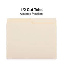 Quill Brand® File Folders, Assorted Tabs, 1/2-Cut, Legal Size, Manila, 100/Box (760135)