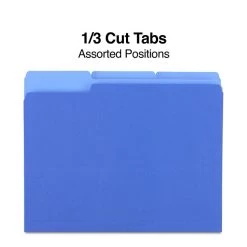 Quill Brand® File Folders, Assorted Tabs, 1/3-Cut, Letter Size, Blue, 100/Box (740913BE)