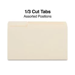 Quill Brand® File Folders, Assorted Tabs, 1/3-Cut , Legal Size, Manila, 100/Box (760137)