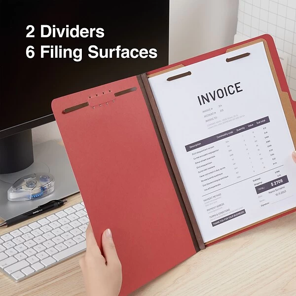 - Six 2″ capacity fasteners on covers and 1″ capacity twin prong fasteners on partitions
