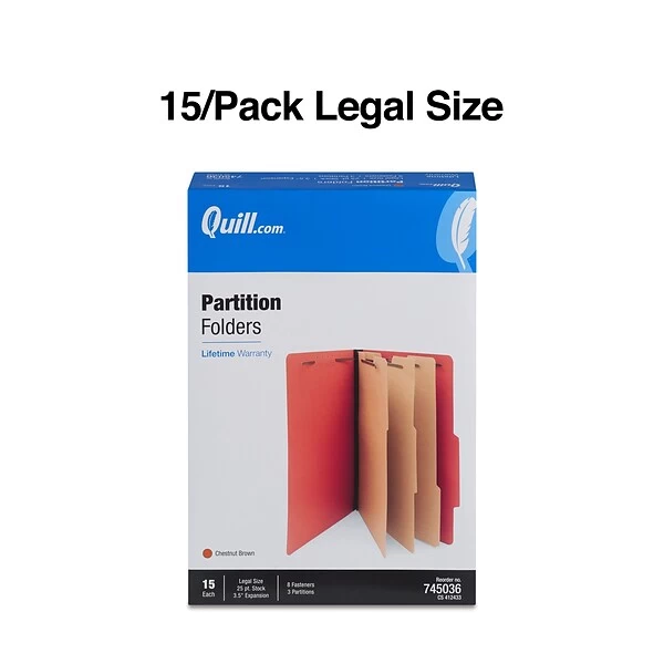 - Brown 25 pt. pressboard folders with three partitions