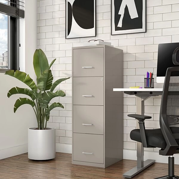 Quill Brand® 4-Drawer Vertical File Cabinet, Locking, Letter, Putty/Beige, 18″D (52147)