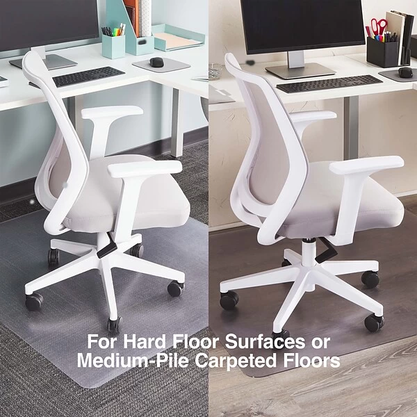 - Protects hard floors and medium pile carpet up to 3/4″ thick (including padding depth) from chair caster wear and tear