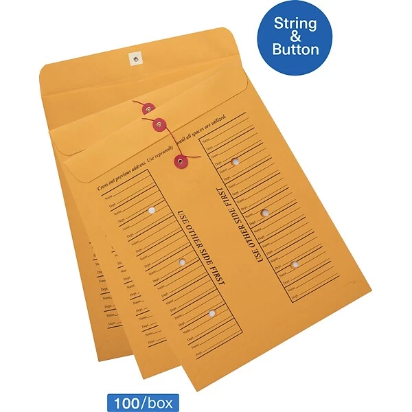 Send important documents to the sales department in Quill Brand brown-kraft inter-office envelopes. Wrap the string around the button to secure paperwork.
