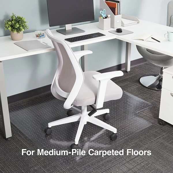 - Protects low pile carpet up to 3/8″ thick (including padding depth) from chair caster wear and tear