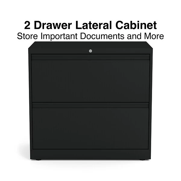 Ideal for commercial, office, and institutional settings, this two-drawer lateral filing cabinet is meant for heavy-duty use. The high-quality, metal construction and baked enamel finish are designed to last.