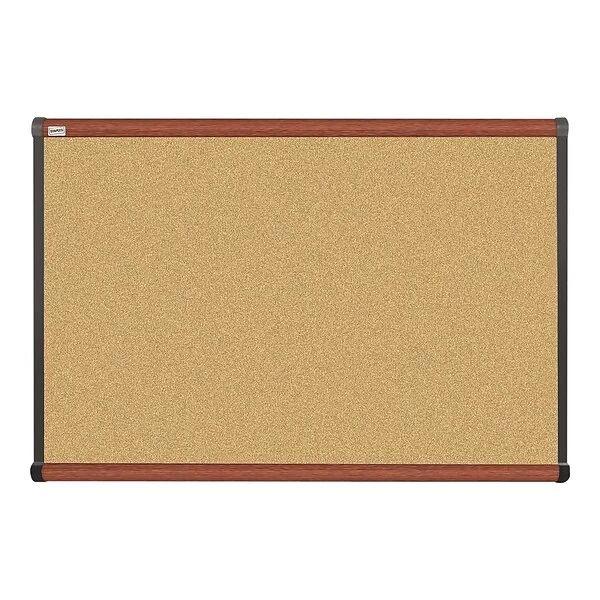 Quill Brand® Durable Cork Bulletin Board, Cherry Frame, 3’W X 2’H (23684-CC)
