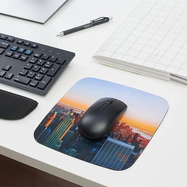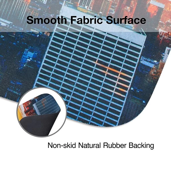 The cityscape optical mouse pad measures 8.75″ in diameter and offers a stylish appearance to your home or office computer. The non-slip rubber backing stabilizes the pad to maintain the ideal positioning.