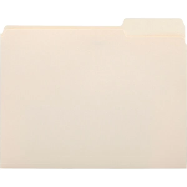 Make filing documents easy with these standard letter-size manila file folders. The oversized 1/3-cut tab layout provides ample room for file names, account numbers and other essential information, while the standard construction is ideal for everyday handling. These letter-size manila file folders feature a versatile design that’s ideal for use in vertical or lateral file systems.