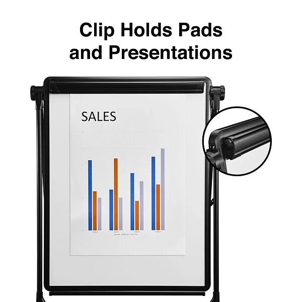 - Angles easily to enhance visibility and improve communication. Clip holds pads and presentations