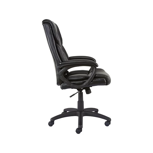 Combine comfort and style when you add this Kelburne Luxura office chair to your workstation. The tall back and plush padding provide a comfortable seating option for long days at the office, while the built-in lumbar support cushions your lower back. This chair features soft Luxura leather-look upholstery for a professional appearance. Pneumatic seat height adjustment lets you raise or lower the seat using a simple lever, delivering a convenient way to customize the setup. With tilt tension and tilt lock, this Kelburne Luxura office chair lets you recline at the perfect angle for viewing your computer screen or sitting back as you field client phone calls.