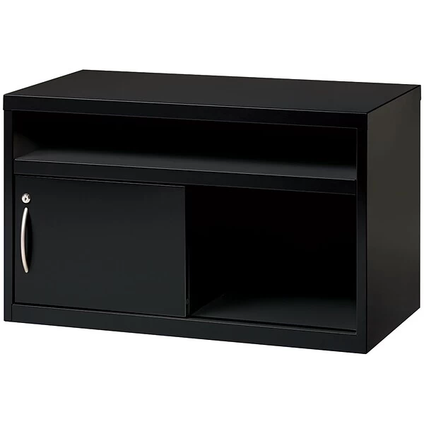 Our 36″ Wide Lateral Low Credenza with sliding door. Includes a core removable lock. The sliding door will lock on either side of the unit. Fixed upper shelf with open storage. Meets or exceeds ANSI/BIFMA standards and contains up to 28% recycled material.