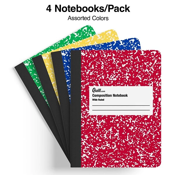 Prepare for important meetings and courses with these composition notebooks. The wide-ruled design helps you write legible notes, while the 15-pound paper construction resists ink bleed for clean writing. These Quill Brand 7.5 x 9.75-inch marble composition notebooks arrive in assorted colors to help create a color-coded system, and the standard size keeps your writing organized.