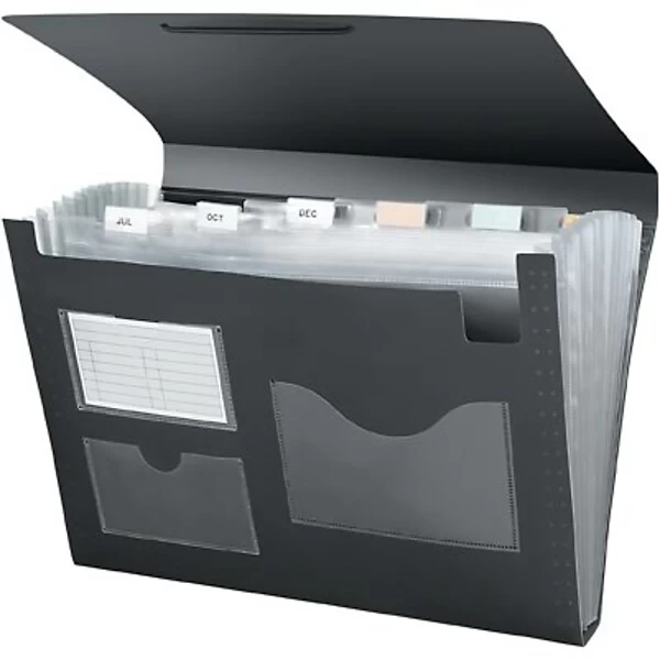 Quill Brand® Poly 13 Pocket Expanding File, Flap And Cord Closure, Letter Size, Black (11407-QL)