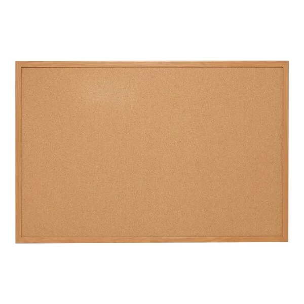 Share important information with this standard cork bulletin board. The included factory-installed mounting system makes it simple to secure this board to the wall, and the large surface area lets you display posters, print-outs and other memorable items with room to spare. With a natural self-healing cork surface, this bulletin board lets you change your display frequently without showing signs of wear. Pushpins, thumbtacks or are all you need to secure items, and an attractive oak-finish frame completes this standard cork bulletin board.