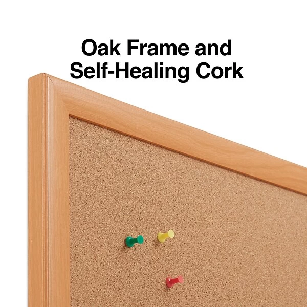 Quill Brand® Standard Durable Cork Bulletin Board, Oak Frame, 6’W X 4’H (28319-CC)