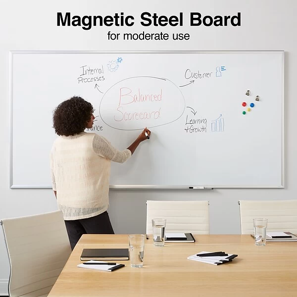 - Magnetic whiteboard with a 5 year warranty can be used as a writing and display platform